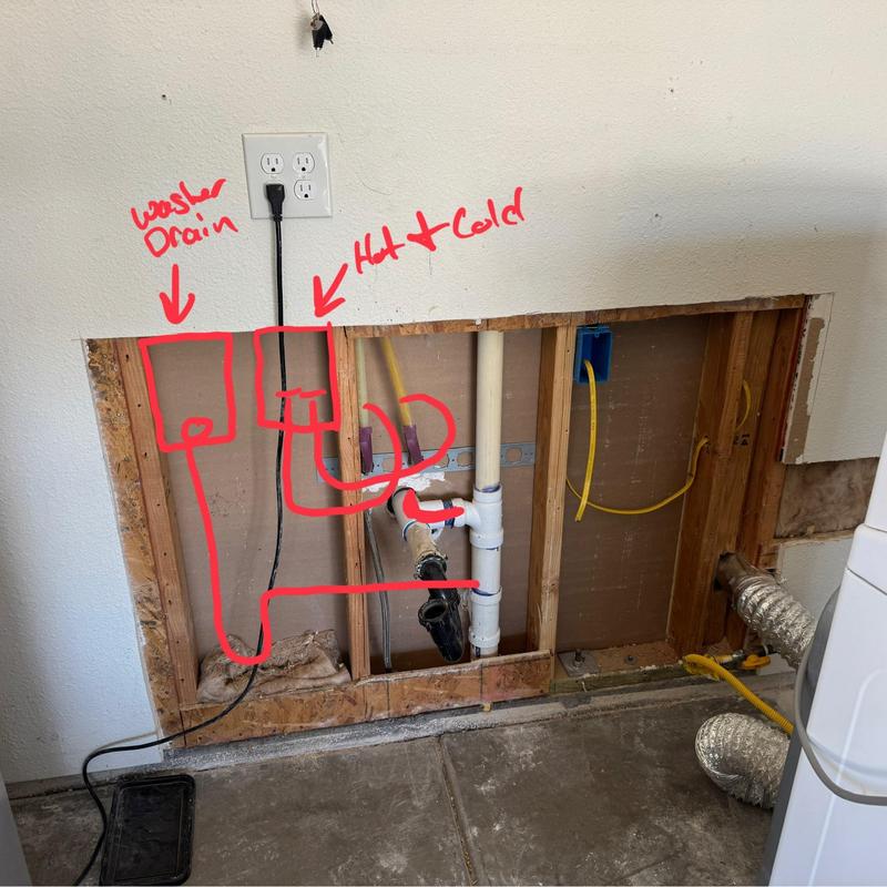 A plumber installed kitchen faucets, garbage disposals, and bathroom sinks in Merced, California. Kitchen and restroom drains are in place, with a dishwasher connection pending. Some sink drains remain incomplete due to a delay in materials for the condensation line.