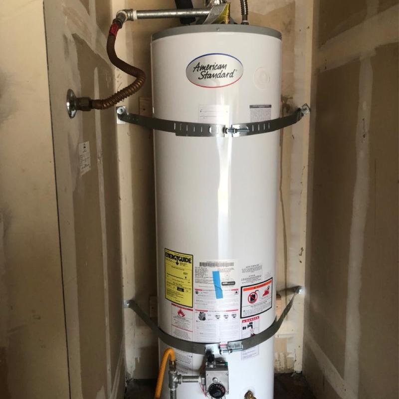 Two technicians from Above All Plumbing replaced a 40-gallon gas water heater in Fresno, California. They also replaced all associated accessories to ensure full system functionality.