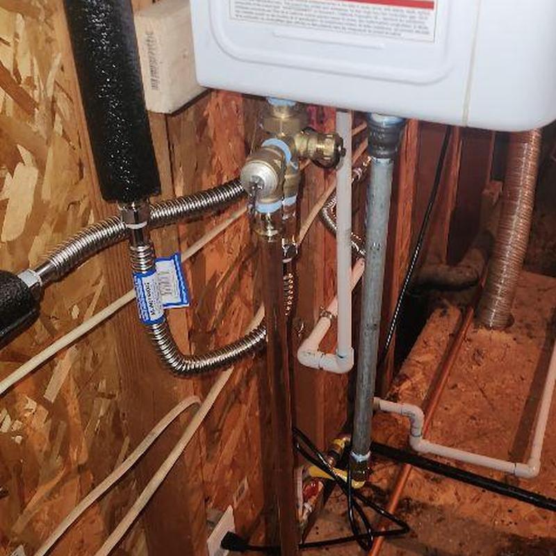Above All Plumbing upgraded a home in Fresno, California by replacing a tank water heater with a tankless system. Technicians installed a recirculation line, rerouted 40 feet of hot and cold water, and combined two systems. They also replaced a shower cartridge in the master bathroom during the same visit.