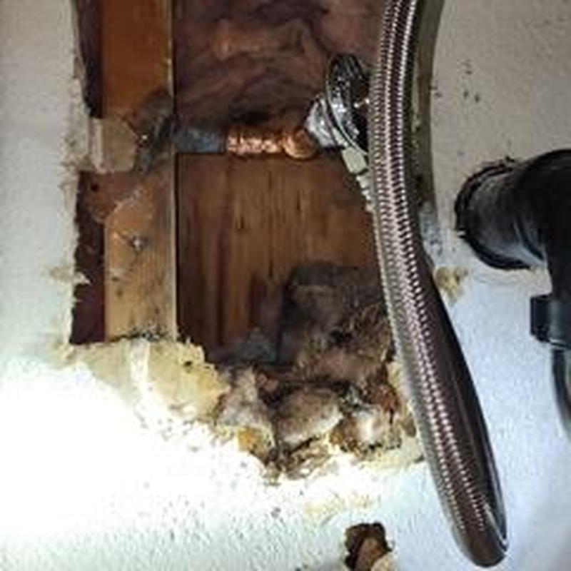 A plumber in Clovis, California repaired a hidden leak under a master bedroom sink. They accessed the wall cavity, replaced a damaged 90-degree fitting, and installed a new angle stop. The plumber tested the system and confirmed the leak was resolved.